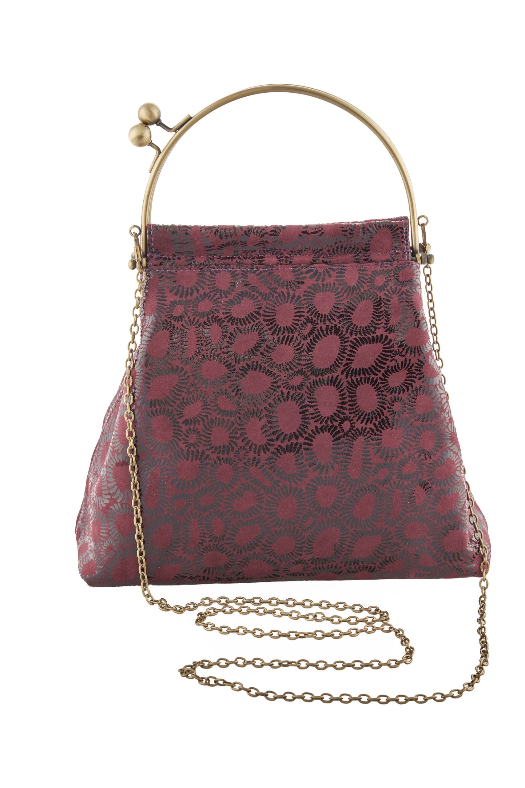 MATERIALES: Cuero genuino, (forro) asa y marco metálico, cadena metálica